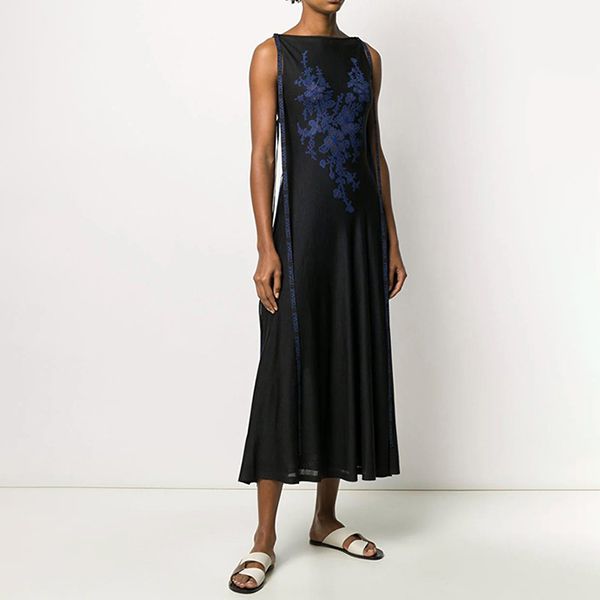 【ロエベ】フラワー刺繍 偽物 シルクマキシワンピースS3106210MC
