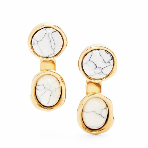 樹脂ビーズをセットしたデザインが特徴の、大人っぽい雰囲気を醸し出すドロップピアスになります。