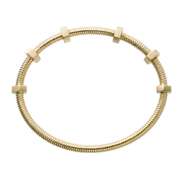 日用品をスタイリッシュで大胆な芸術品に昇華させた、エクル ドゥ カルティエ。何の変哲もないアイテムであるナットがプレシャスなジュエリーに。力強い存在感を主張する、独創的なブレスレットです。